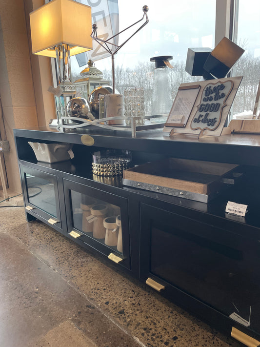 Black Media Cabinet w/ Pull Out Doors-MODEL HOME