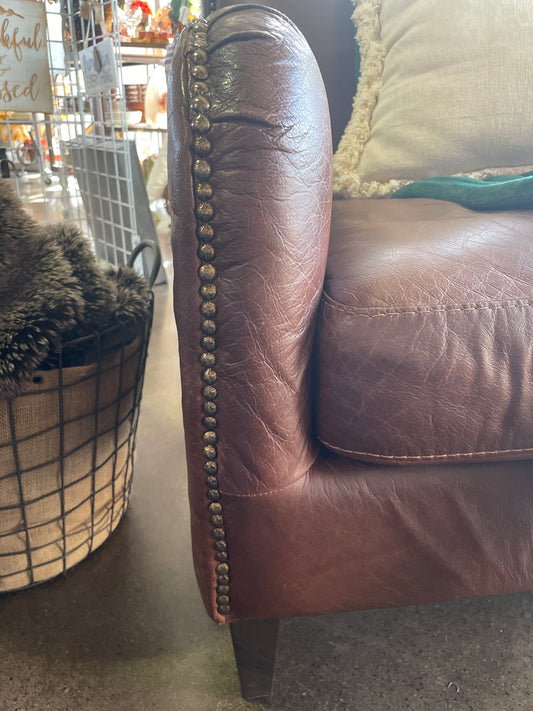 Brown Faux Leather Side Chair w/ Removable Cushions