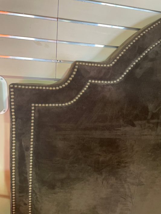 Brown Upholstered Queen Bed Nailhead Trim