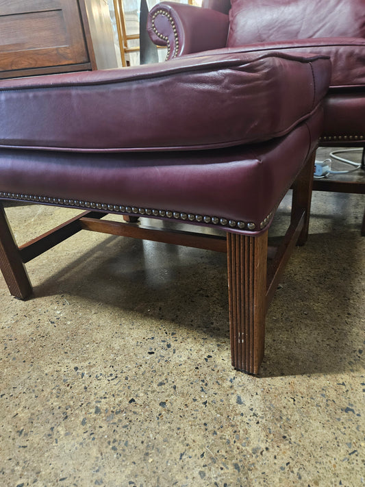 Burgundy Leather Accent Chair/Ottoman