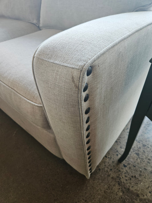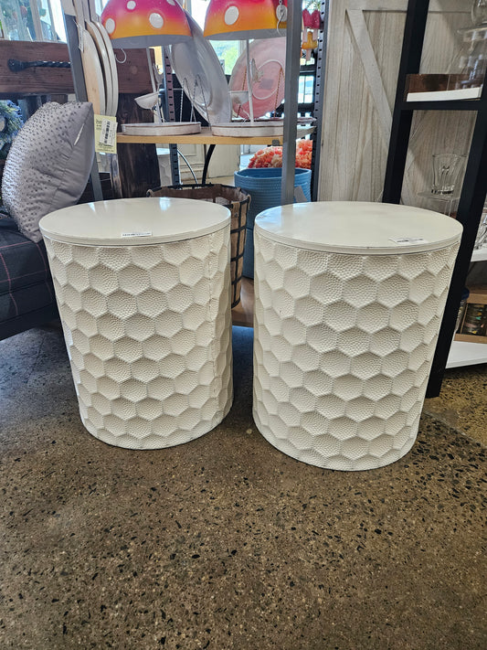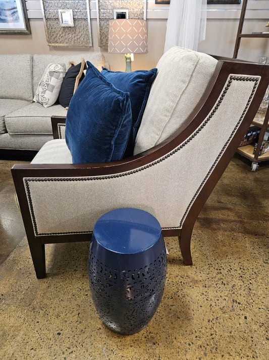 Cream Oval Ottoman w/ Button-MODEL HOME