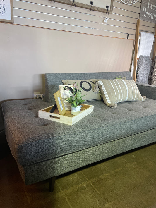 Sold outGrey Tufted Bench