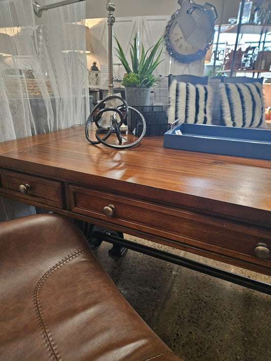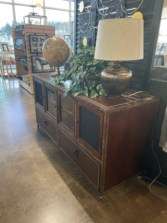 Sold outLeather-top media stand