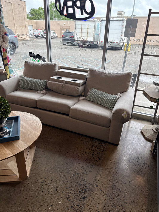 Loveseat Charcoal Nubby Fabric Tufted Back