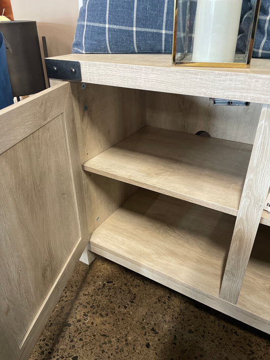 Sold outWhite washed farmhouse tv stand
