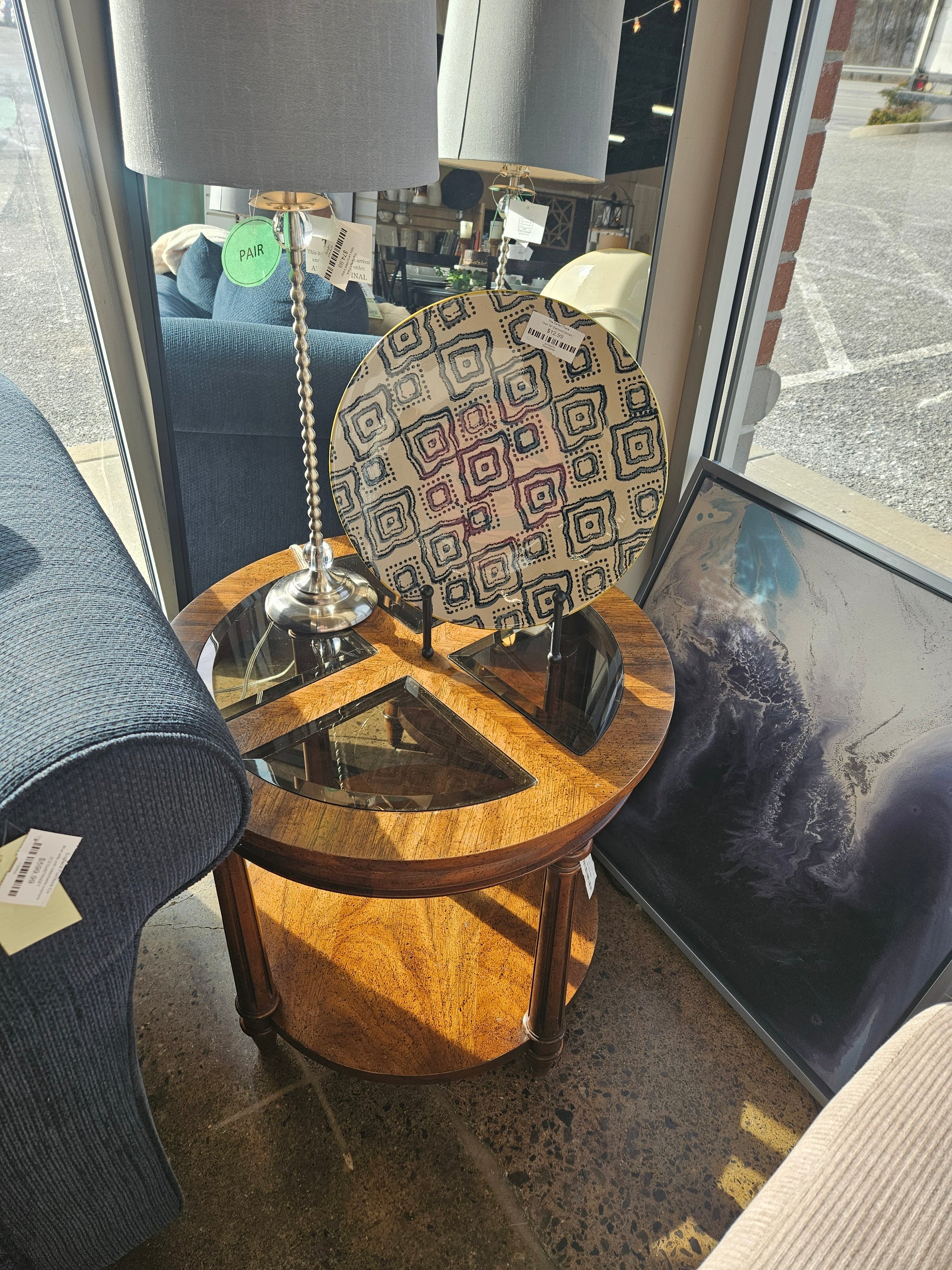 4 section glass top end table with shelf