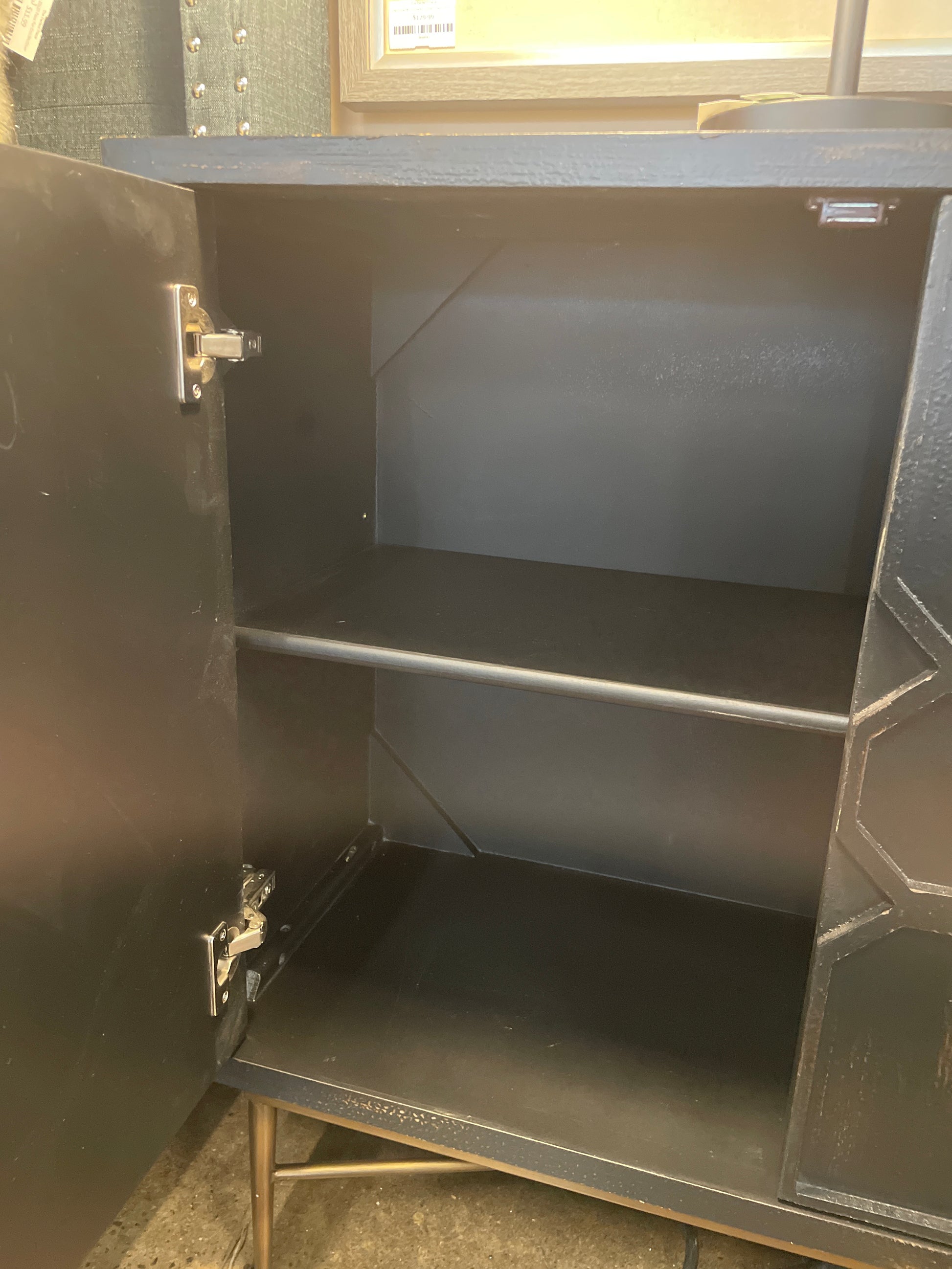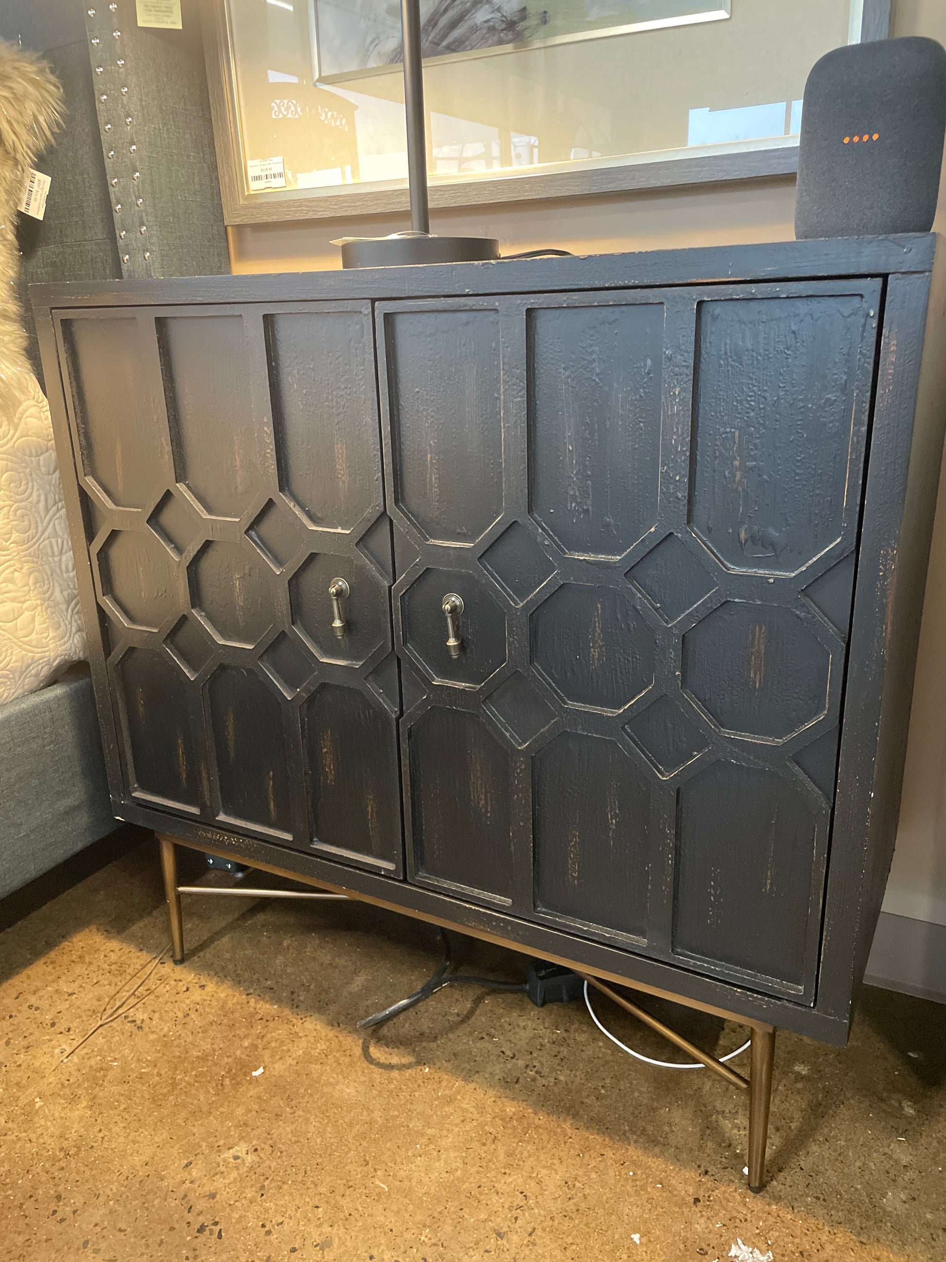 Bring eye-catching style and storage to your space with a Distressed Black Modern Carved Cabinet! This cabinet is great for your dining or living room.