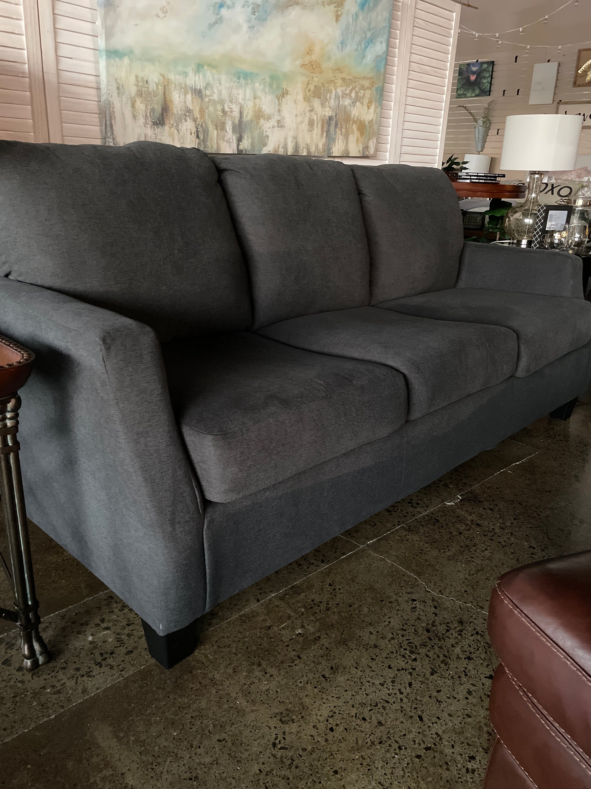 Dressed to impress with distinctive cutaway arms, the Bayonne sofa is an above-and-beyond choice for your fashionable abode. Wrapped in a soft flatwoven charcoal fabric that’s naturally on trend, this designer sofa is sure to suit contemporary spaces and modern farmhouse places—and look right at home with classic and eclectic furnishings. That’s the beauty of a great transitional piece of furniture. That’s the beauty of the Bayonne sofa.