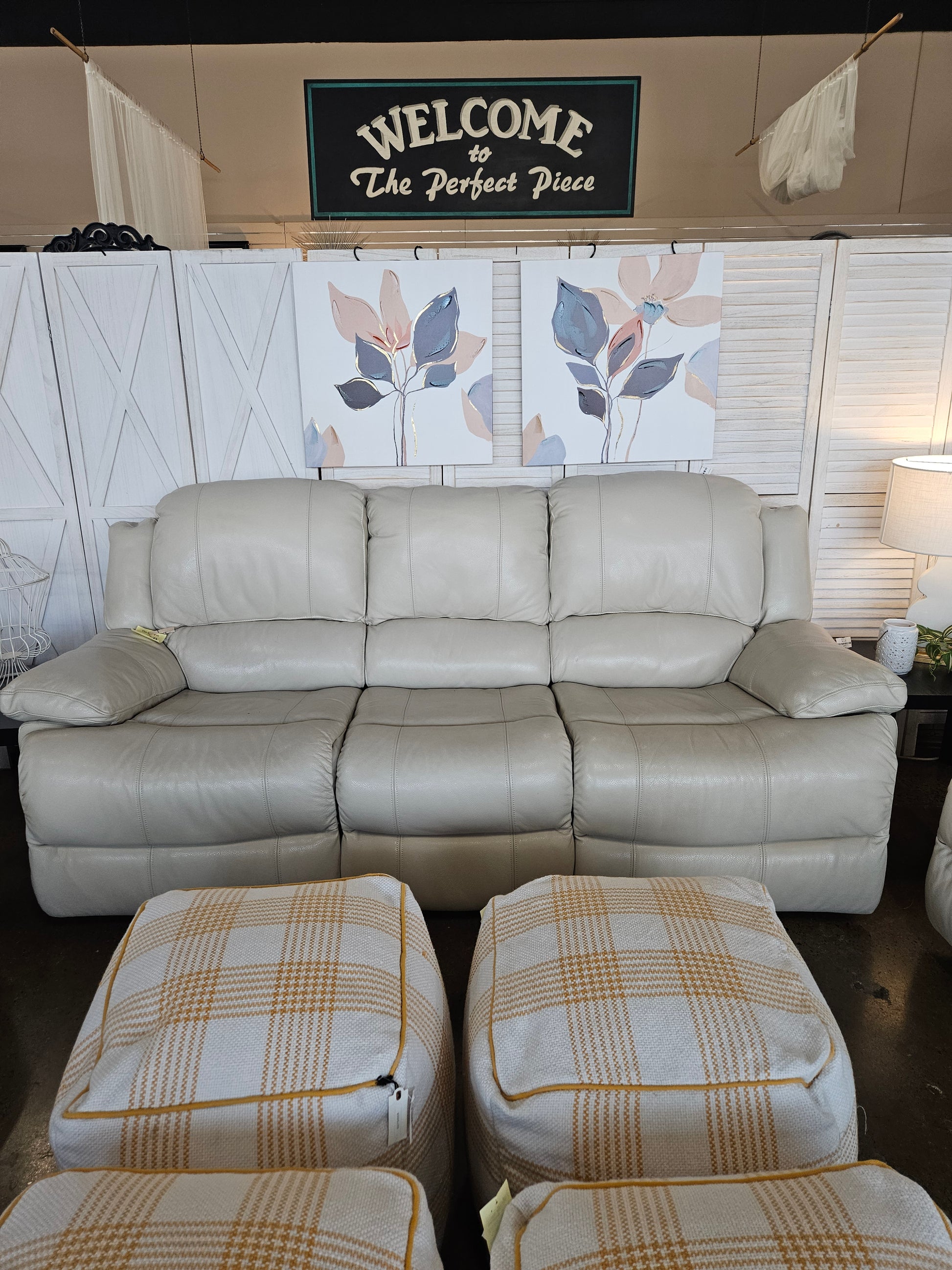 Cream Bonded Leather Reclining Sofa