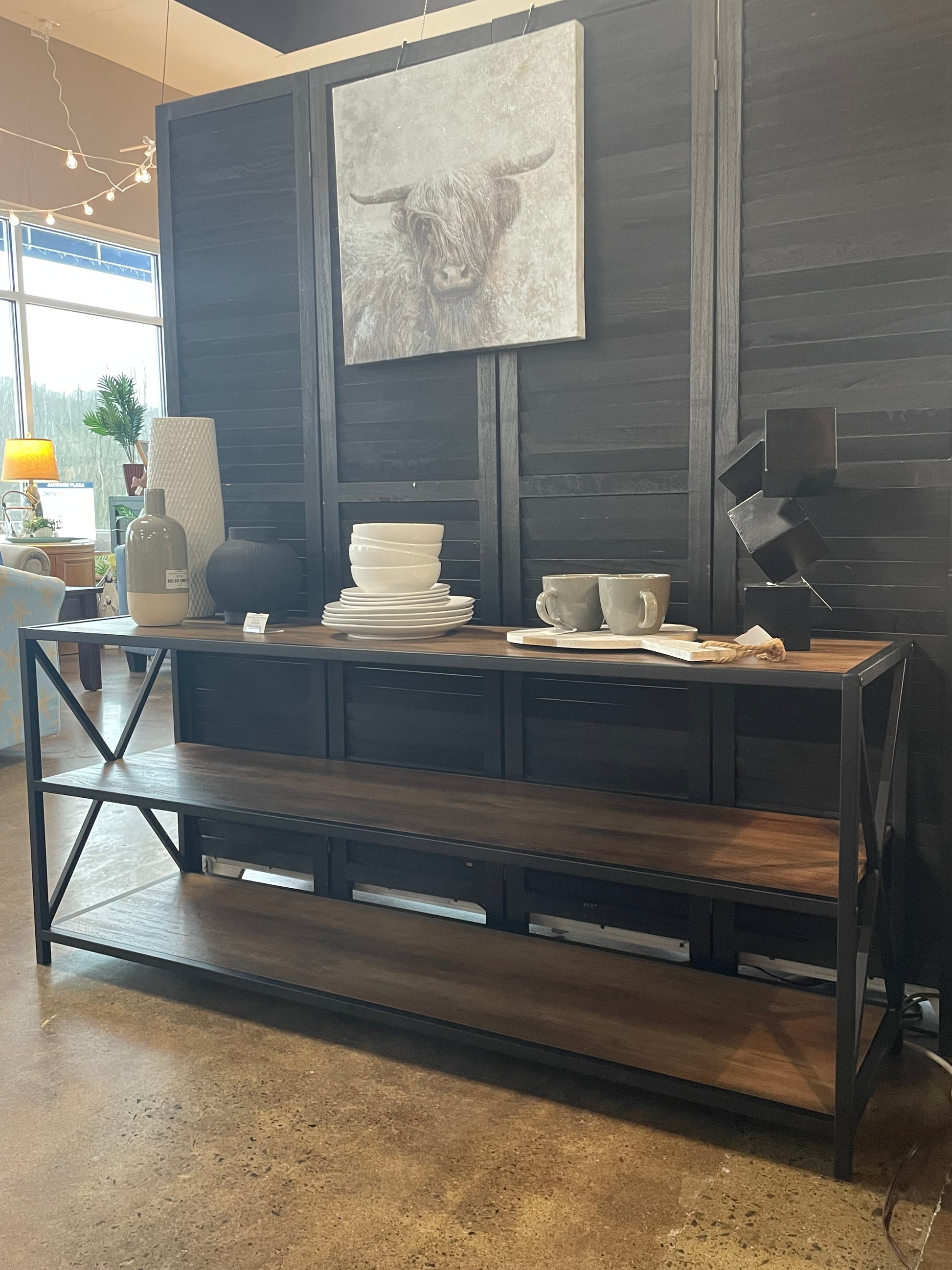 Dark Walnut Metal 3 Shelf Unit-NEW FROM MODEL HOME