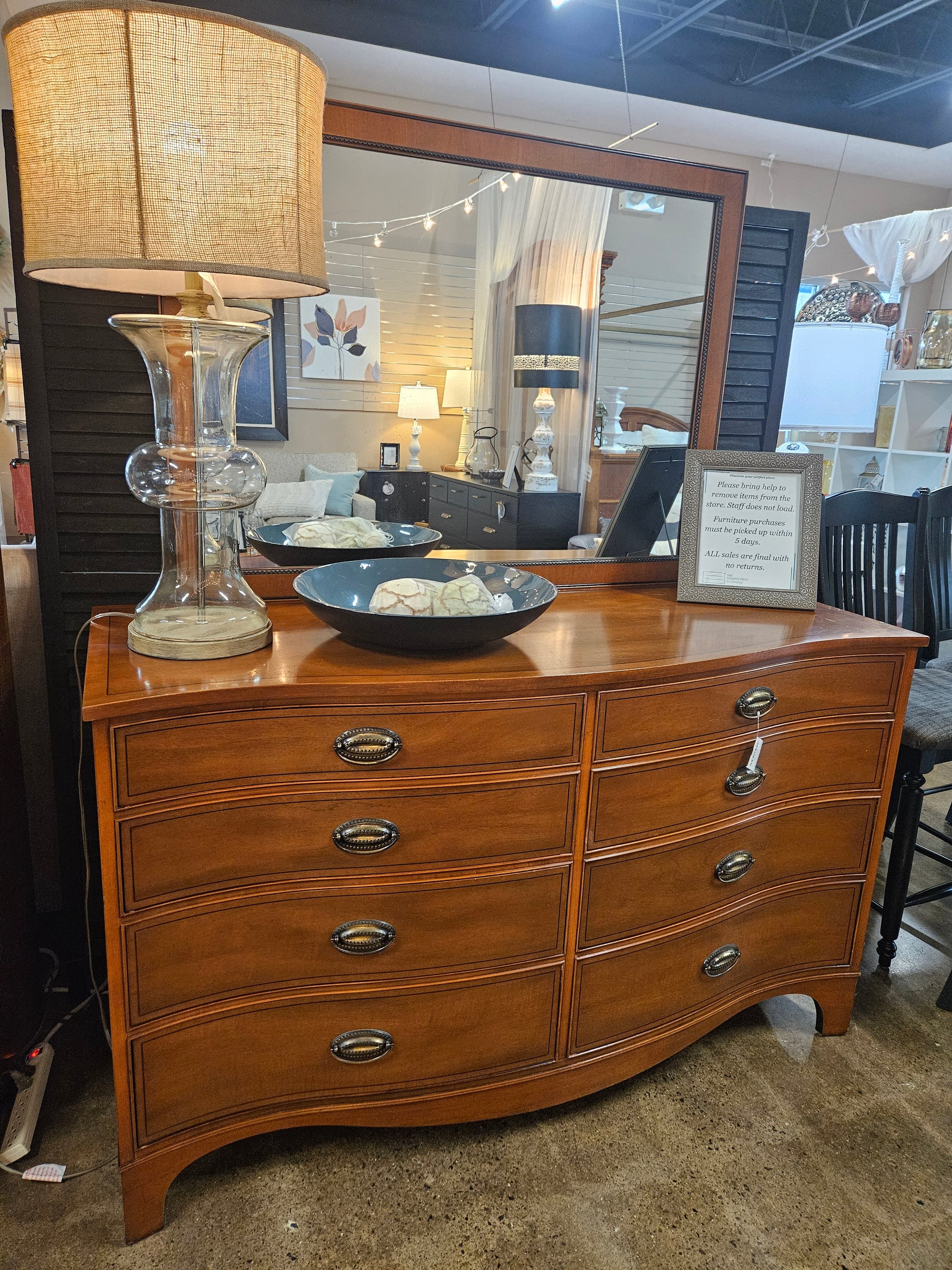 Mahogany Bow Front Dresser w/ 8 Drawers
