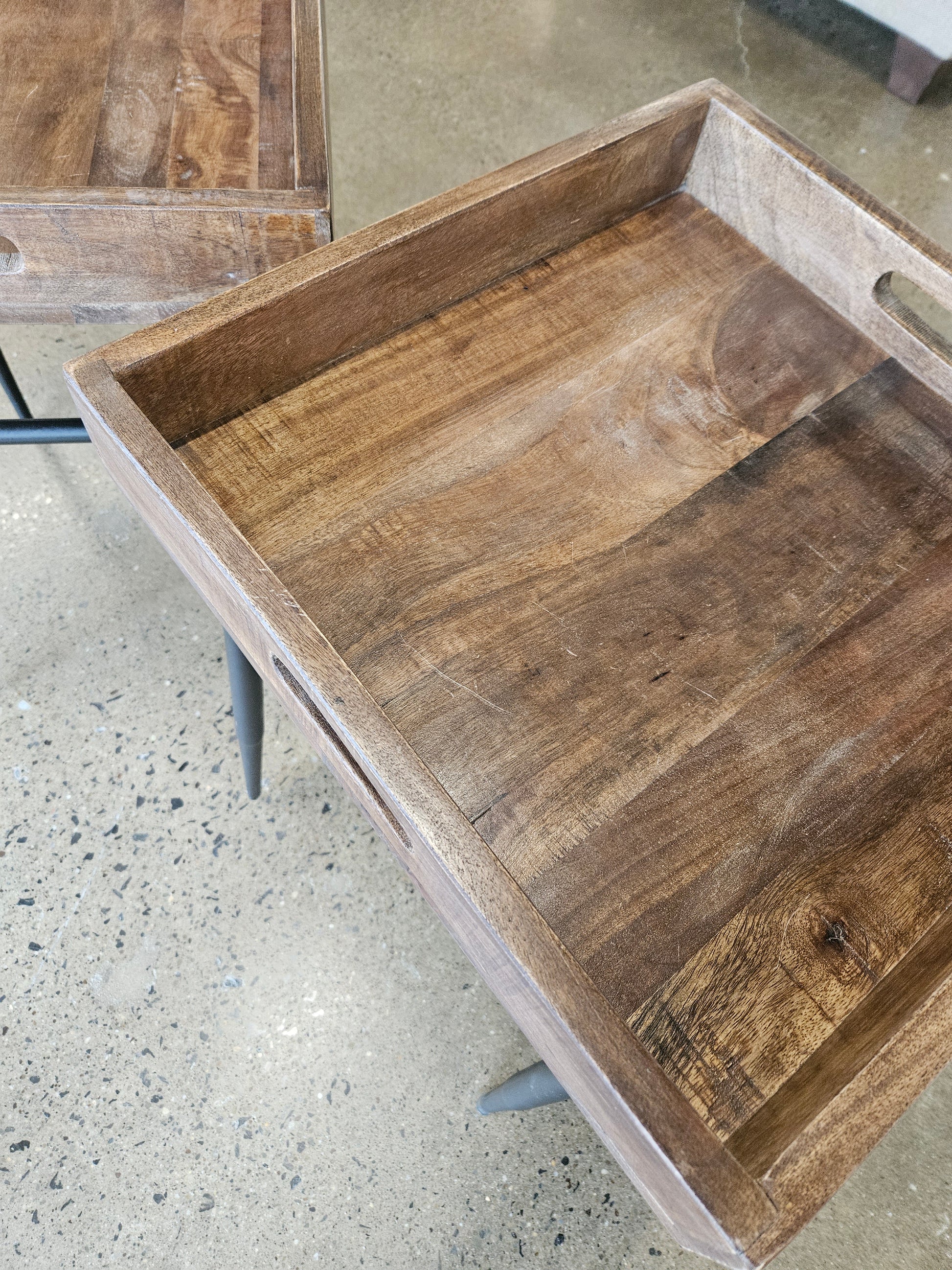 End Table PAIR Wood Tray Top/Metal Base