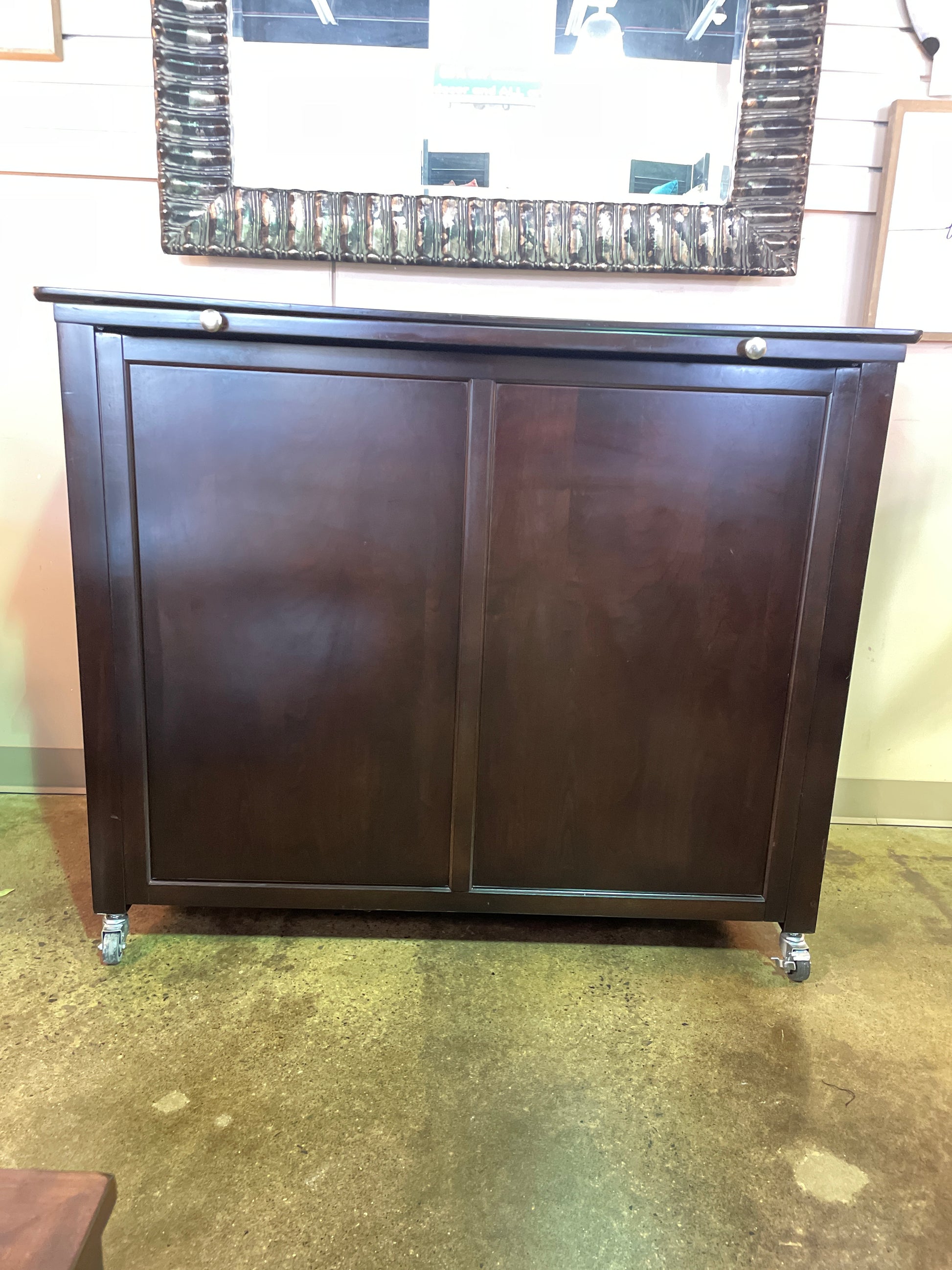 Espresso Wood Island Cabinet with Casters