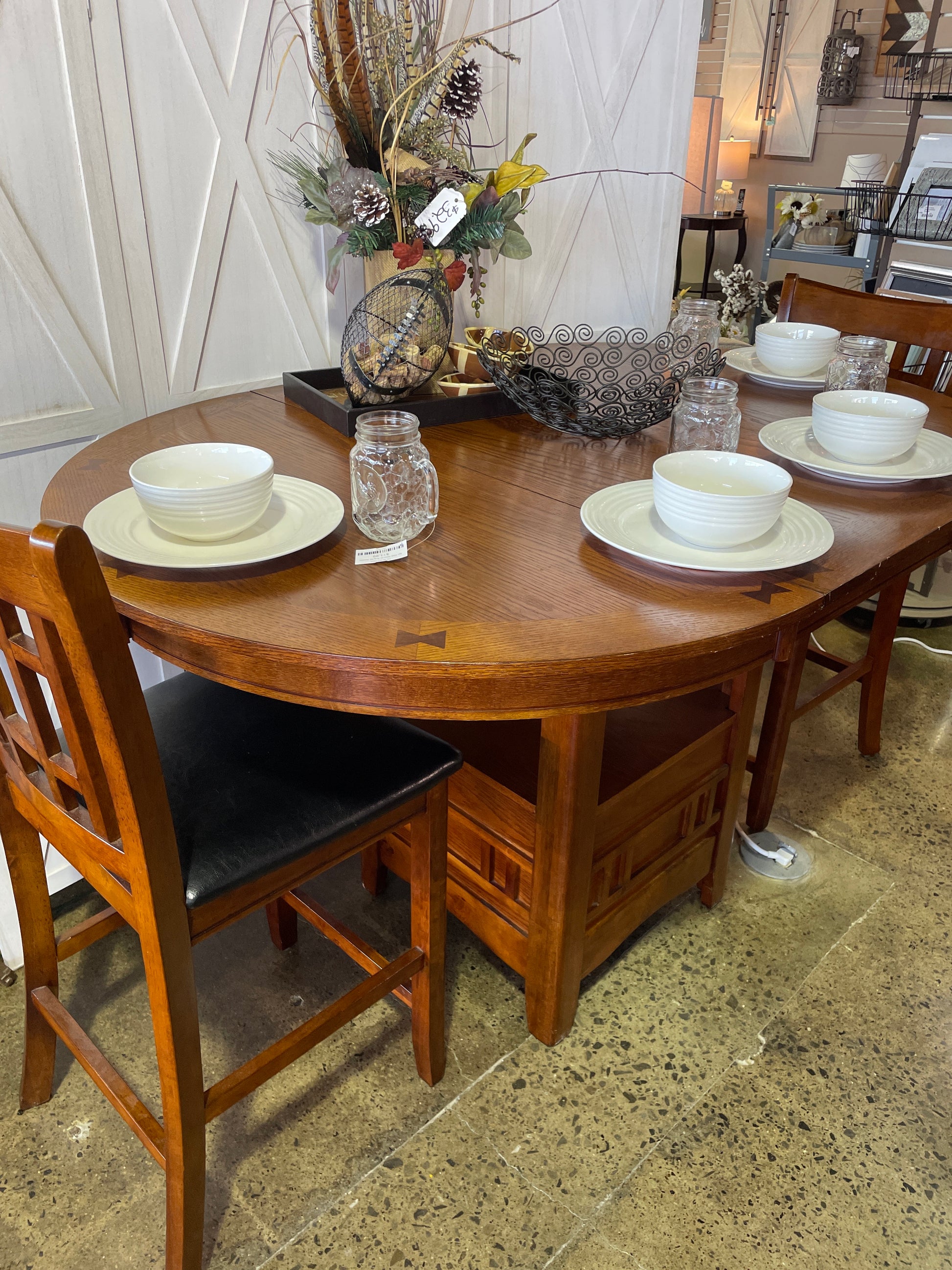 Includes 4 chairs and 1 leaf