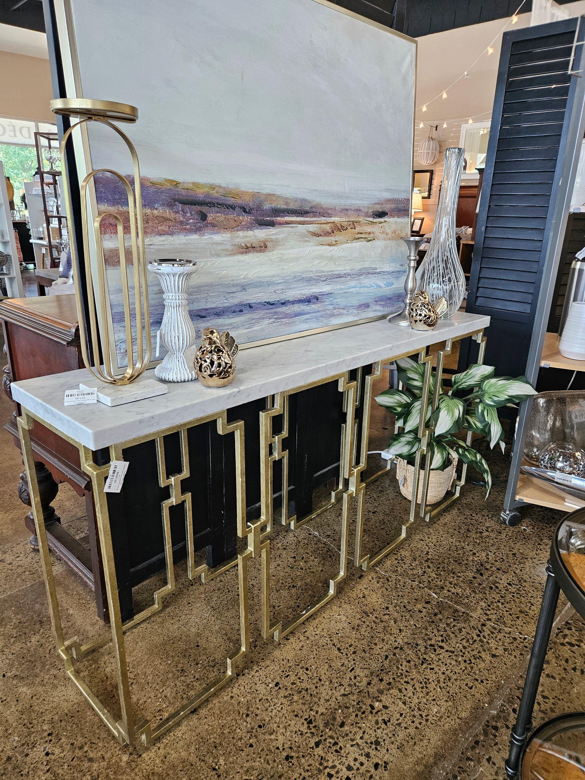 Hooker Furniture Evermore Square Kala White Marble Gold sofa table w/ matching end tables available