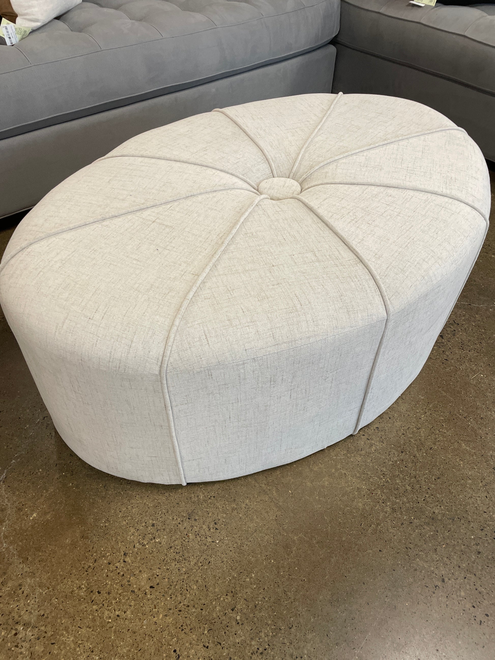 Cream Oval Ottoman w/ Button-MODEL HOME