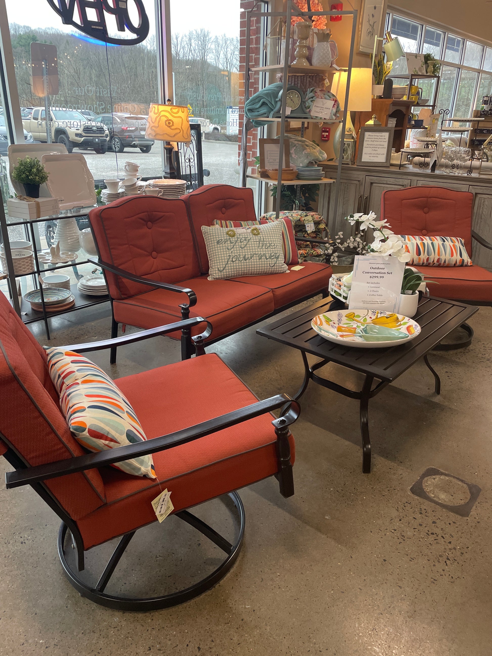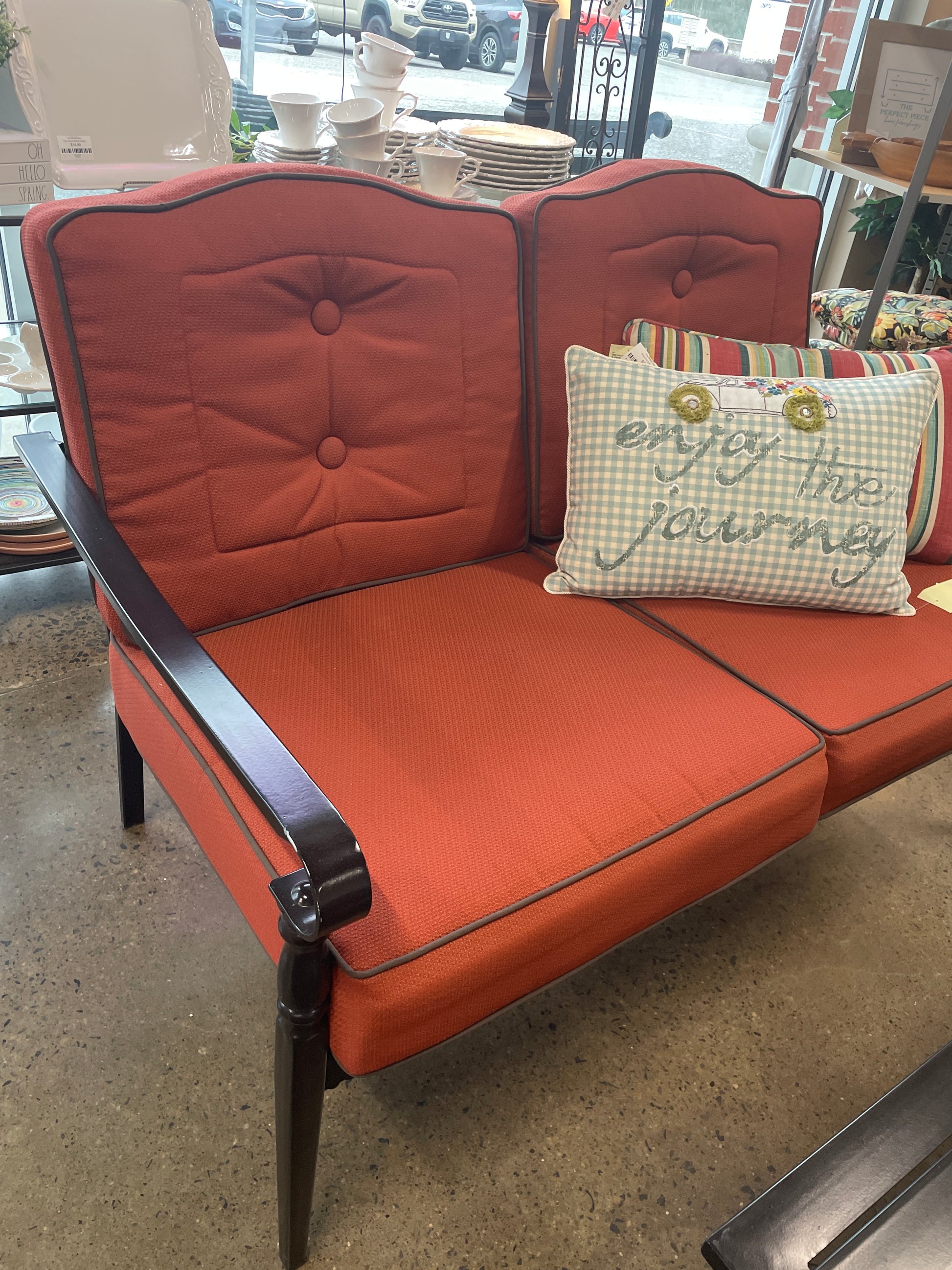 Set includes 2 seater loveseat, 2 side chairs, 1 metal coffee table