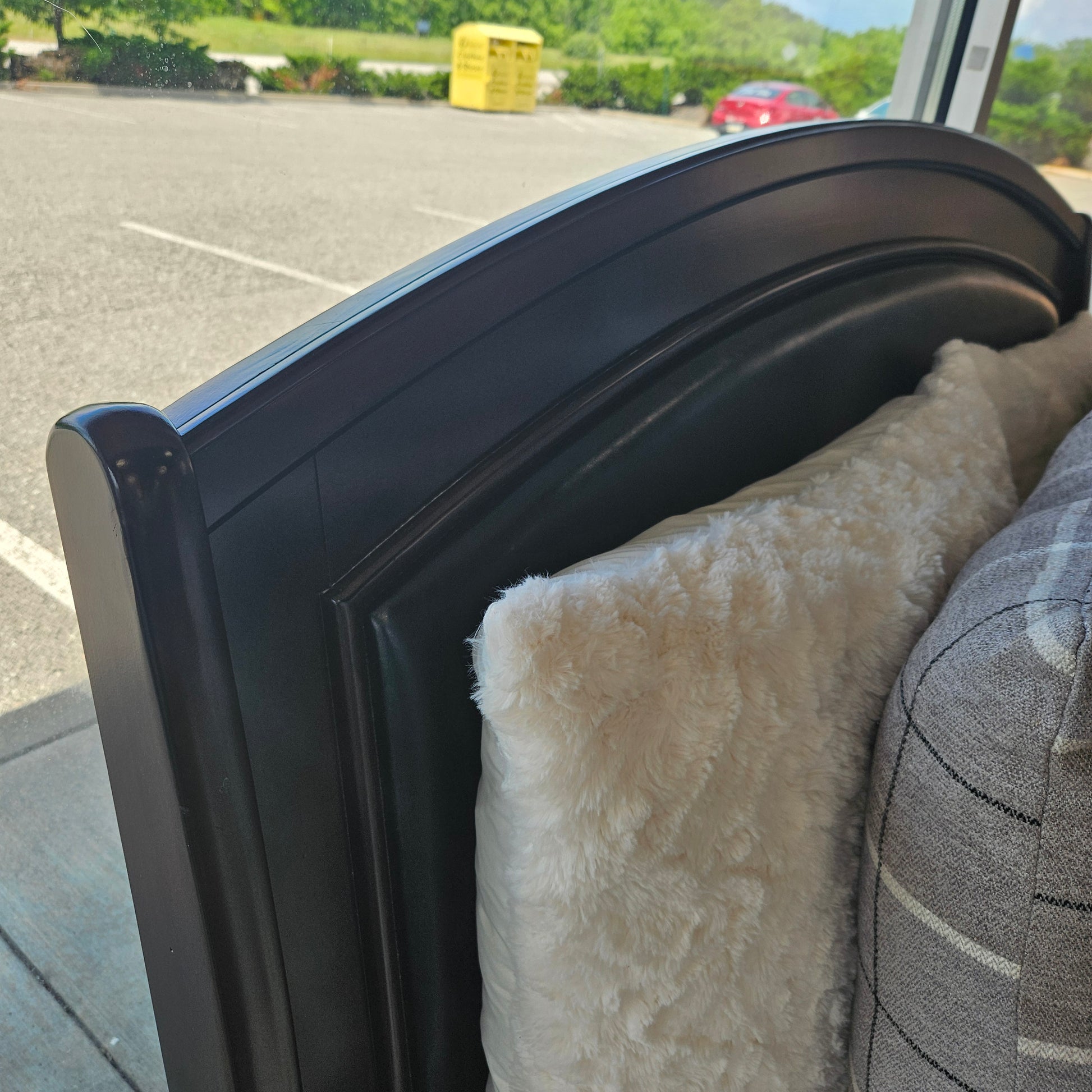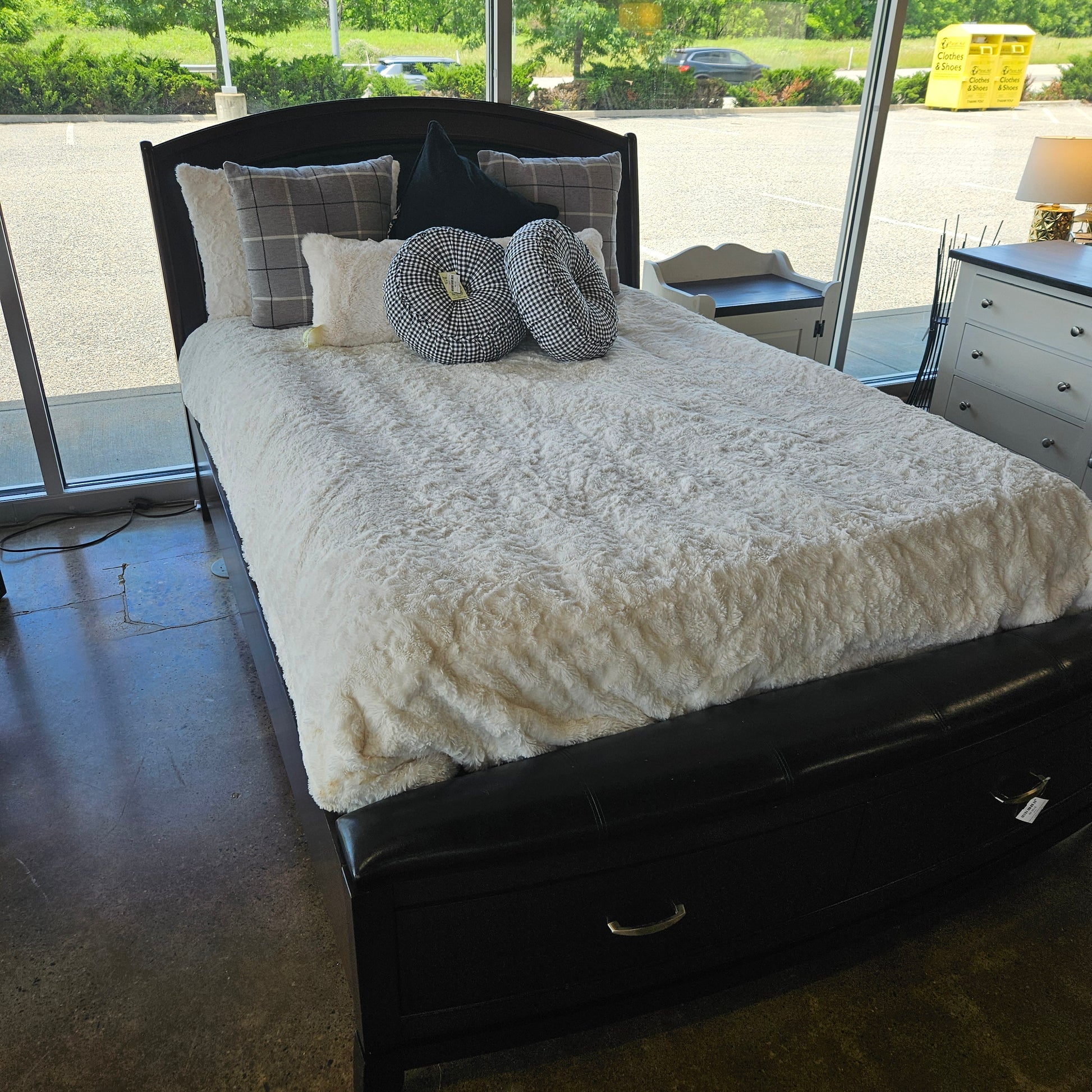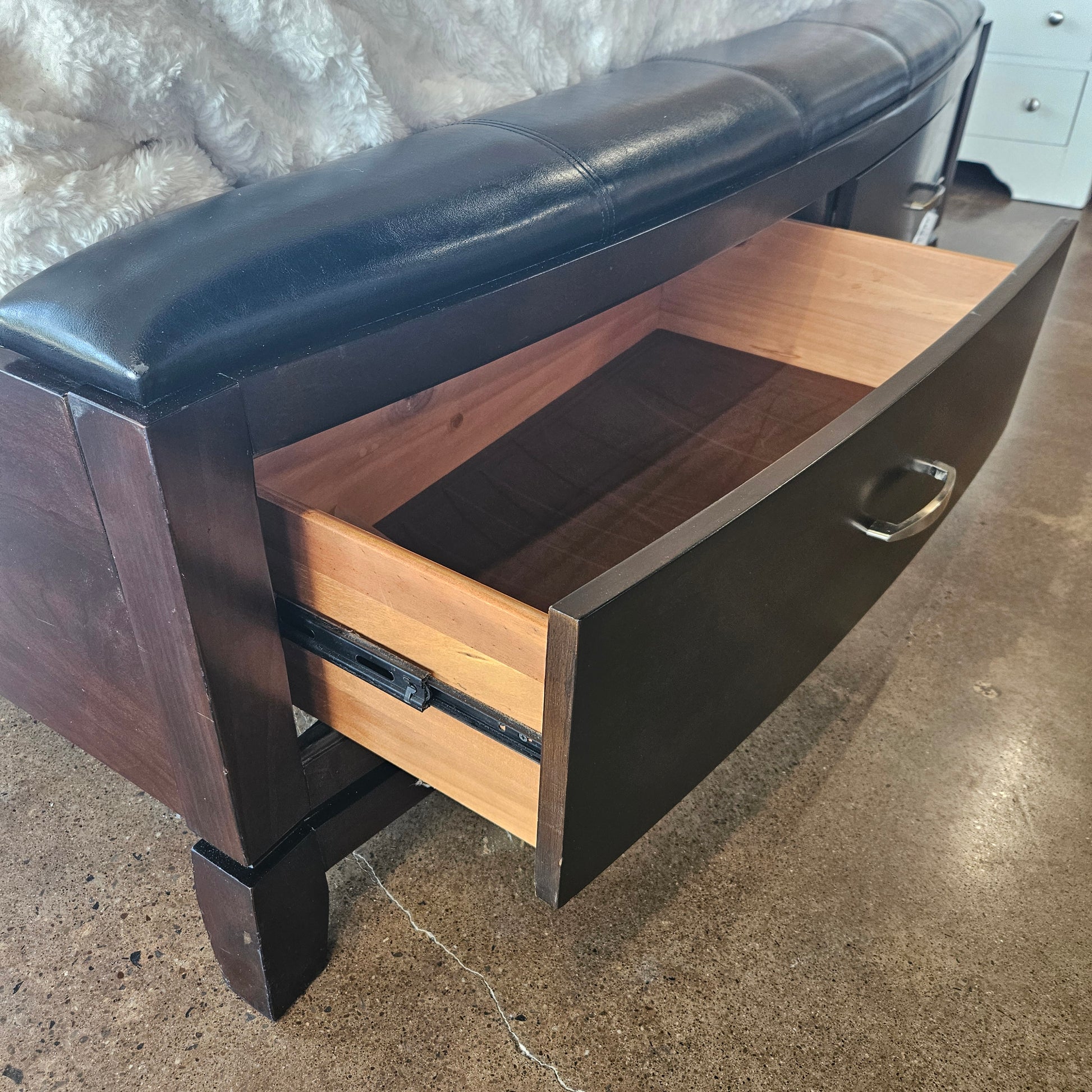 Queen bed with leather like top and 2 drawers