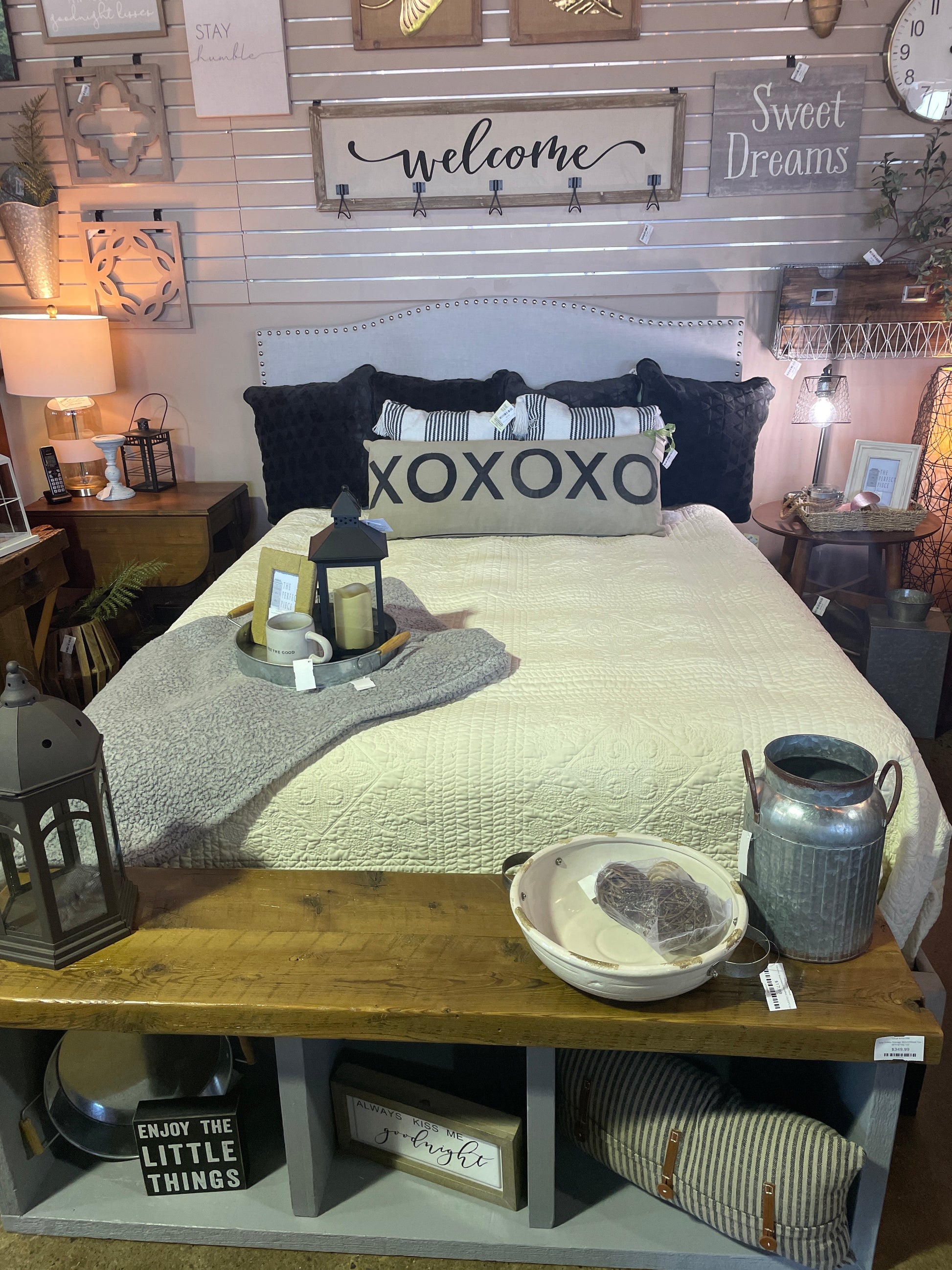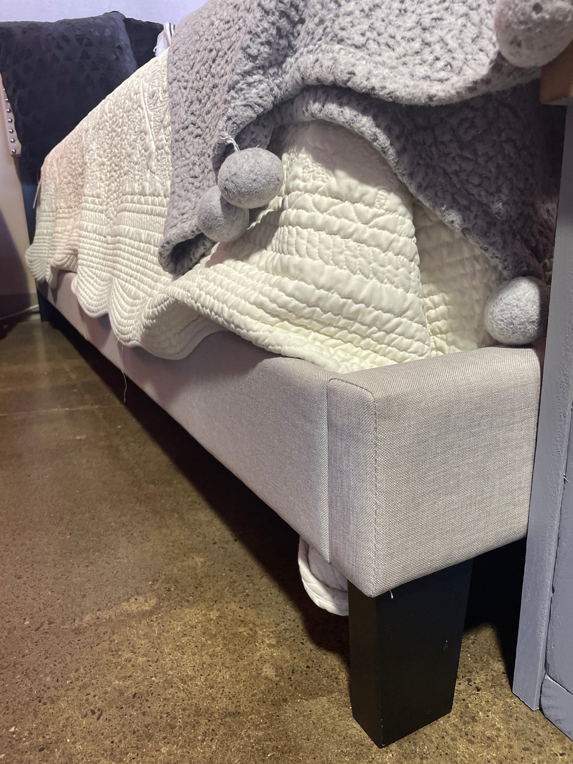 Queen Grey Upholstered Headboard/Frame