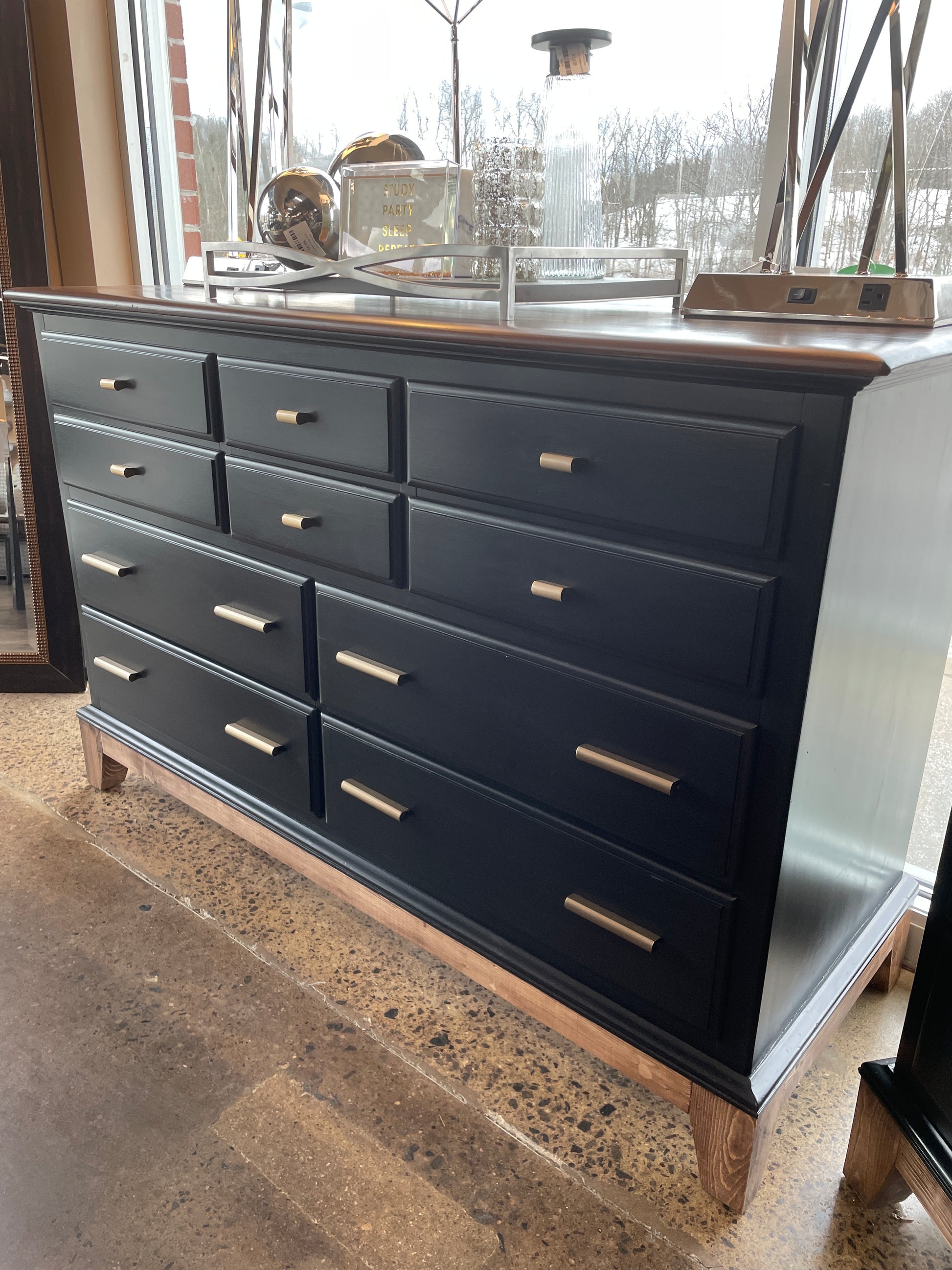 Refinished Black Dresser with Wood Top