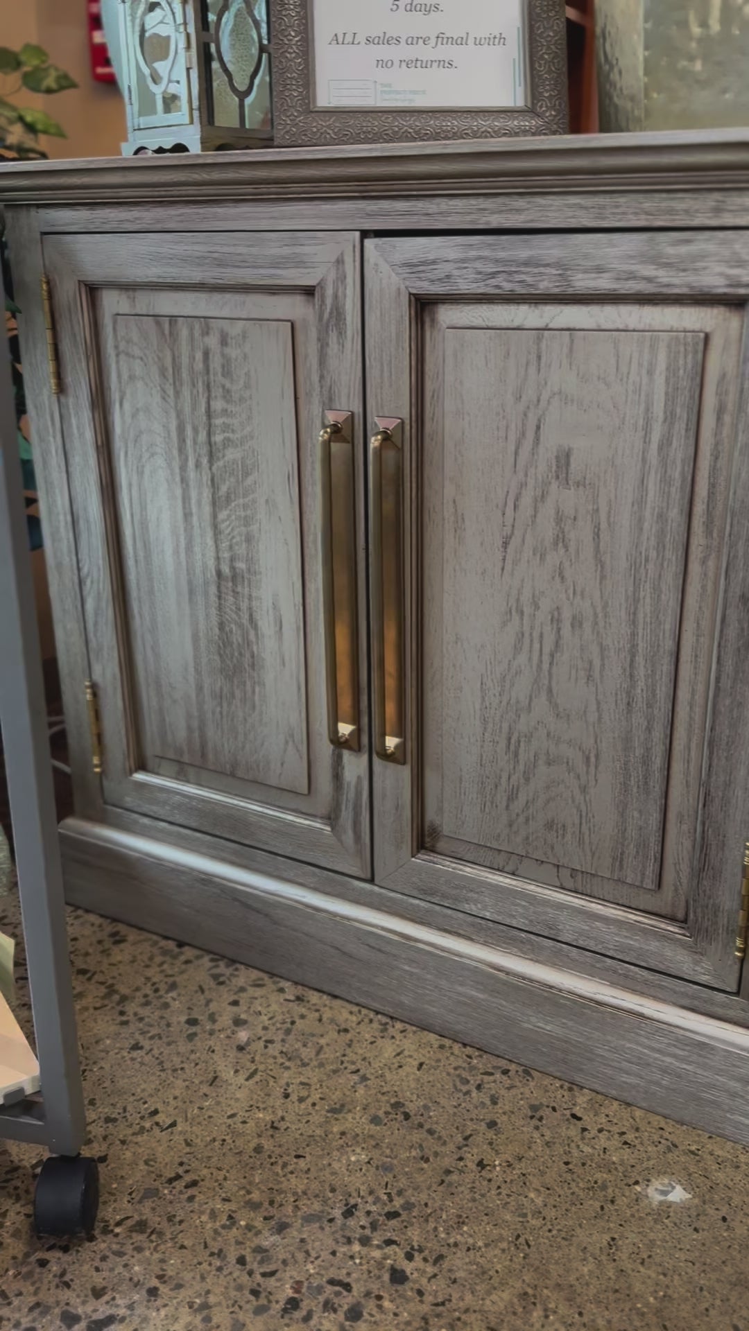 4-door Media Console from Restoration Hardware. Brushed gold handles with inner shelves.