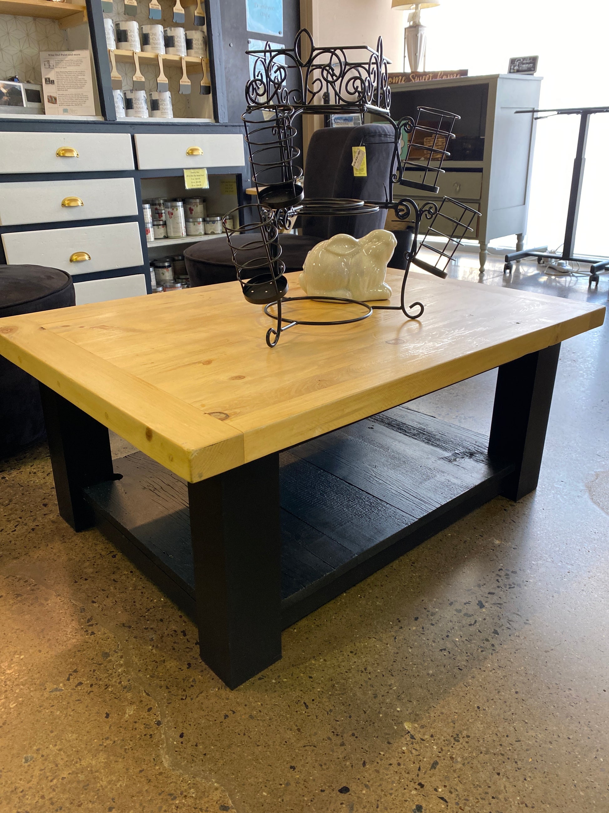 Natural top with black painted base.