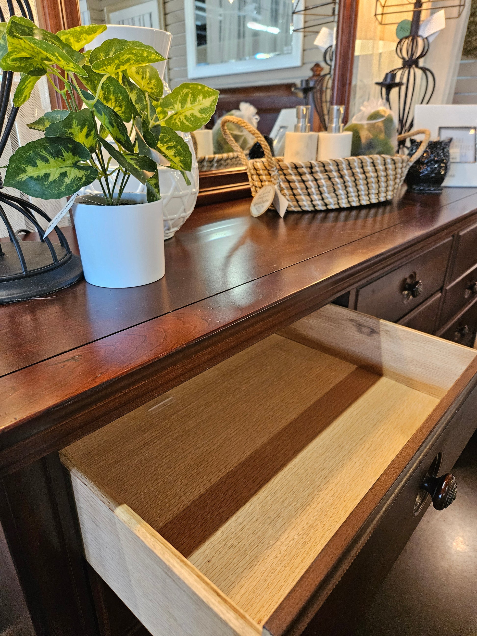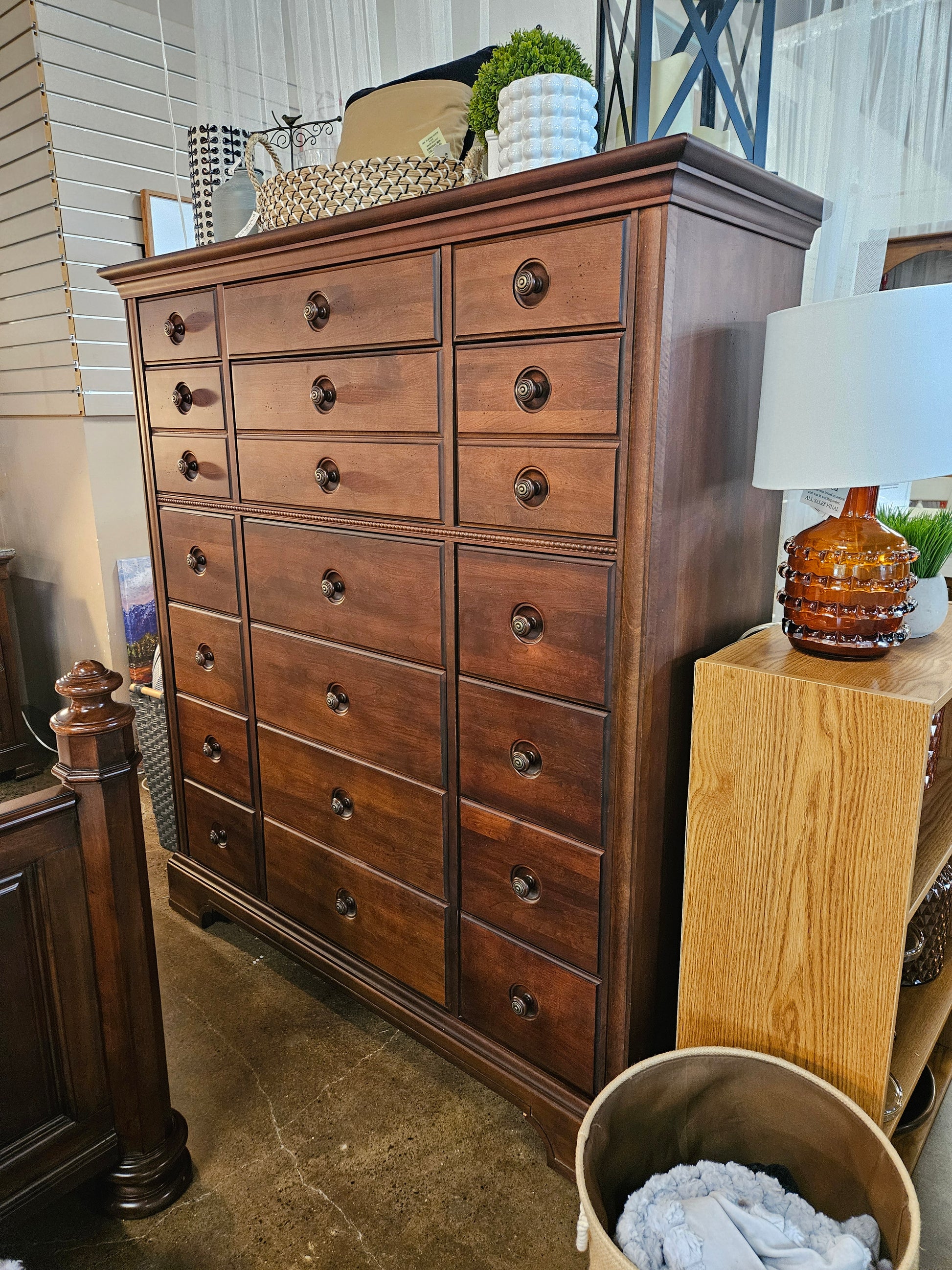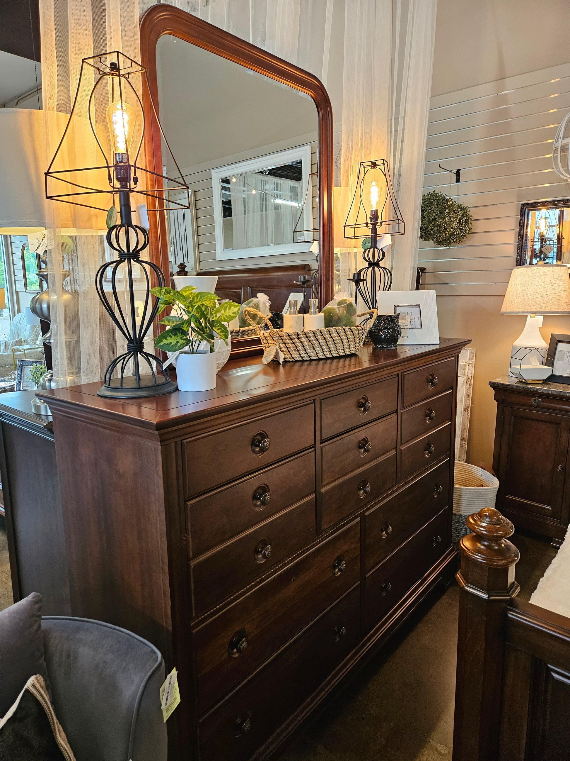 Set includes queen bed frame, 2 night stands, 1 chest, 1 dresser, 1 mirror