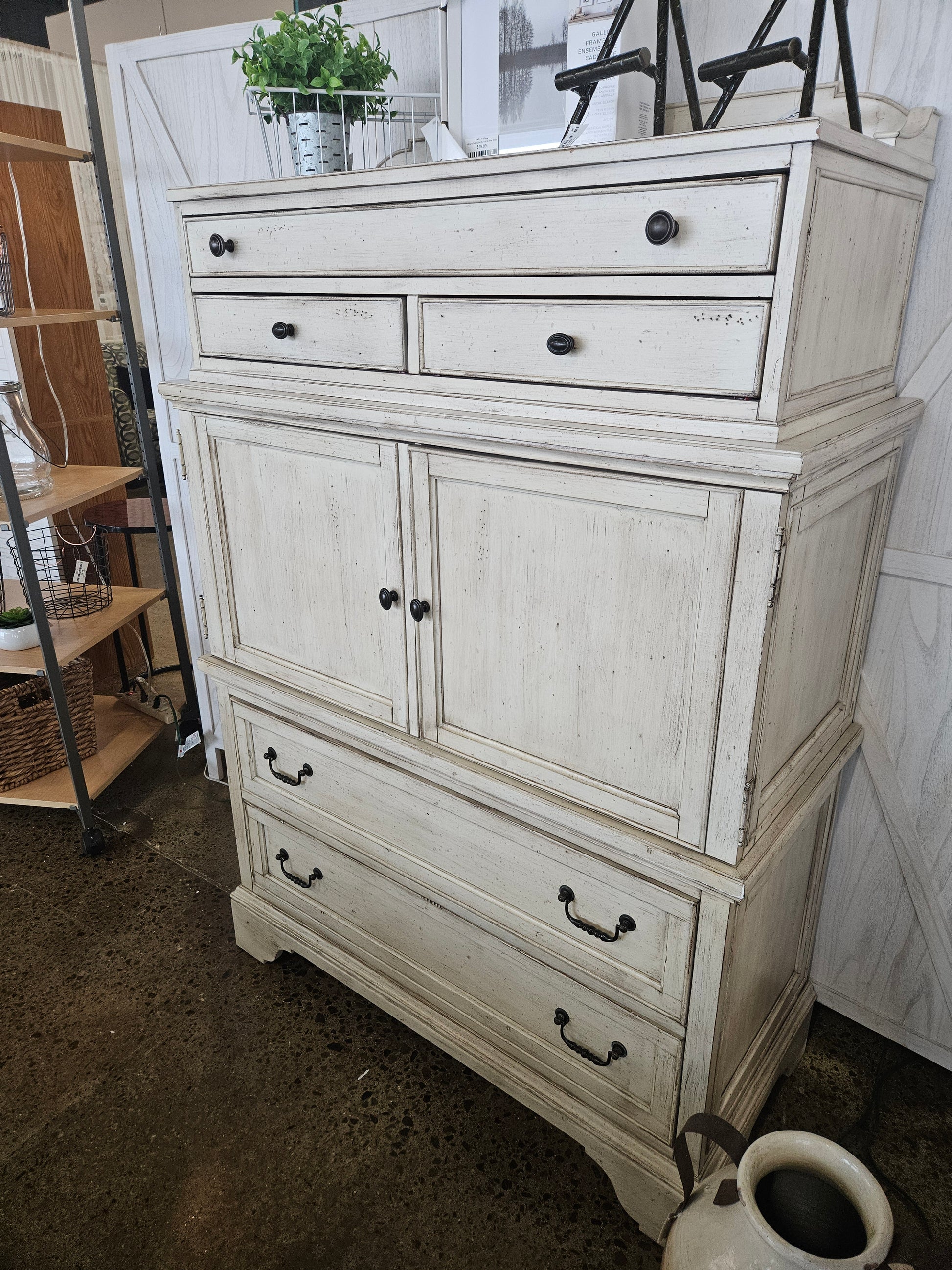 Tall White Washed Door Chest